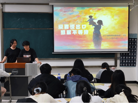 “同學們,猜一猜明天是什么節(jié)日???”“母親節(jié)!”5月11日,新聞傳播學類專業(yè)2023(7)、(8)班在K202教室開展以“愛要說出口,感恩不等待”為主題的團建活動?;顒娱_始前,活動負責人、新聞傳播學類專業(yè)2023(7)、(8)班的班長楊雨霏、朱研溪提前為每位同學準備好信紙和信封。朱研溪說:“我們希望通過寫信這種傳統(tǒng)而深情的溝通方式,讓同學們勇敢表達自己的心聲,將對母親的愛訴說于筆尖?!睂W生們觀看一段關于母愛的感人短片后,...